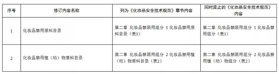 1.《化妆品安全技术规范(2015年版)》修订概况表