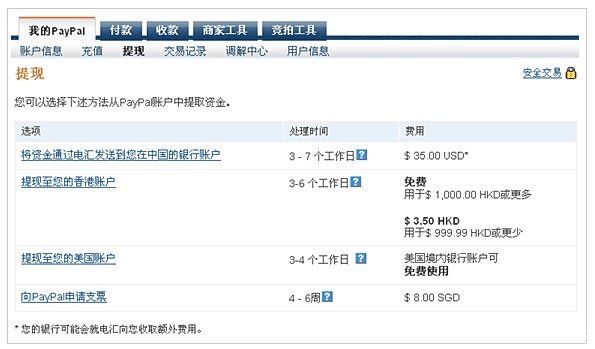向PayPal申请支票:费用较低,但是提现周期很长,邮件可能在邮寄过程中丢失。